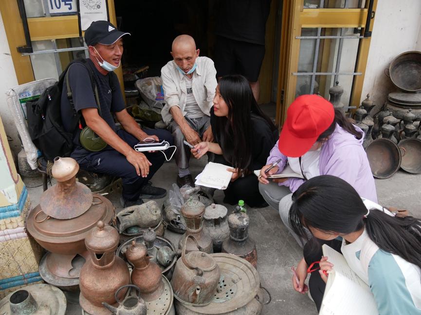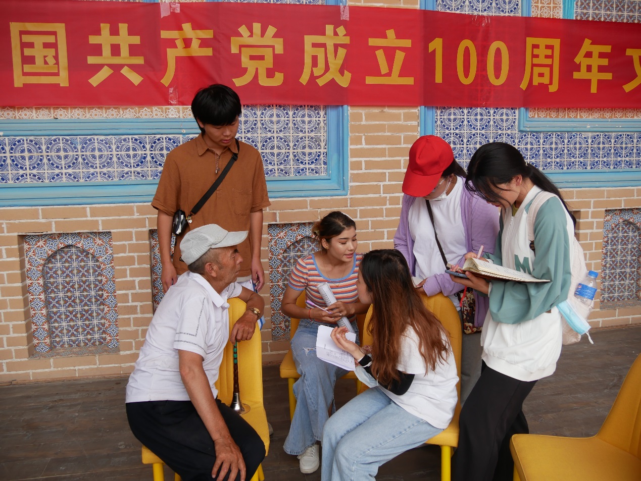 团队成员对莎车县阿曼尼莎汗陵、莎车县回程东城墙遗址、阿孜那清真寺、加满清真寺、手工艺街区、亚克艾日克烽燧等历史文化遗产地进行了详细调研,并对历史文化遗址进行实地测量、记录,整理相关数据;对非物质文化遗产十二木卡姆乐器表演者、维吾尔族传统铜器传承人、艾德莱斯绸传承人、木雕烙画技艺等分别进行采访,记录传承人相关信息并全程拍摄制作流程。