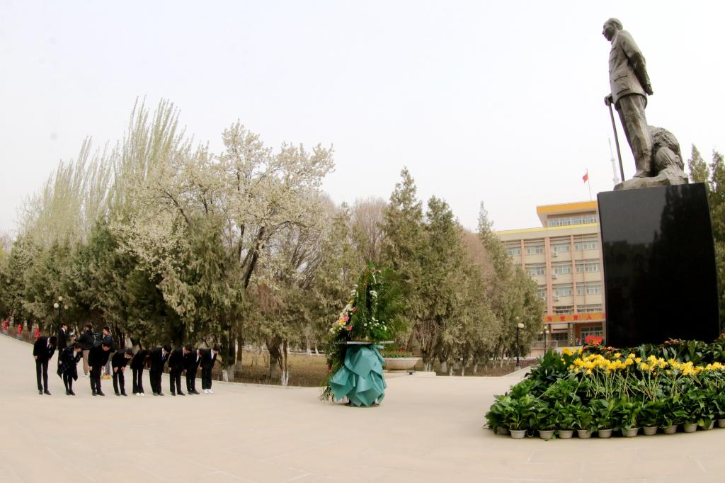 在清明节到来之际,4月5日,yl6809永利教师党支部红色文化广场开展“缅怀革命先烈,领悟革命精神”活动,缅怀王震将军,重温革命精神。