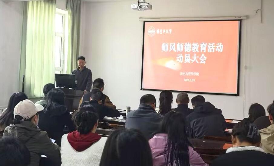 动员大会上历史系主任孙长龙和青年教师黄瑞柳作为教师代表发言,呼吁yl6809永利全体教师以身作则,积极参与到师德师风建设中来,共同为yl6809永利营造出一个良好的公司产品氛围。